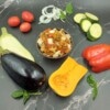 TILAPIA, AUGBLANTE, TOMATER, RØDE PEPPER, SQUASH, BUTTERNUT SQUASH, HVIT LØK, HVITLØK, OLIVEN OLJE, ITALISKE URTER, Fersk persille, FERSK BASIL, FETTUCCINI, SJØSALT, SVART PEPPER