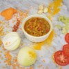 เลนส์สีแดง, จาก, มะเขือเทศ, ผักชีฝรั่ง, หัวหอม, กระเทียม, แครอท, ขิงสด, น้ำมันมะพร้าว, โฮมเมดผักสต็อก, ผงยี่หร่า, CURCUMA, เกลือทะเล, พริกไทย