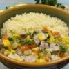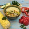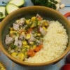 猪肉, 湾叶, 新鲜欧芹, 酥油, 面粉, 新鲜玉米, 夏南瓜, 红辣椒, 植物油, 自制鸡汤, 海盐, 黑胡椒, 大蒜, 库斯库斯